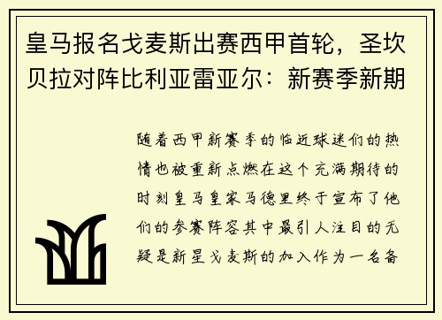 在经历了数月的伤病休养之后,皇马球迷终于等来了球队的明星球员加雷斯·贝尔的强势回归。8月14日,西甲联赛一场备受瞩目的比赛在伯纳乌球场打响,皇家马德里主场迎战莱加里斯达。对于贝尔而言,这不仅是一场普通的联赛,更是他重返赛场的首战,而他也毫不让人失望,用一记精彩的进球宣告了自己的王者归来。 比赛伊始,皇马展现出了强烈的进攻欲望和战术执行力。开场仅15分钟,皇马便通过一次快速的边路进攻打破了场上的僵局...